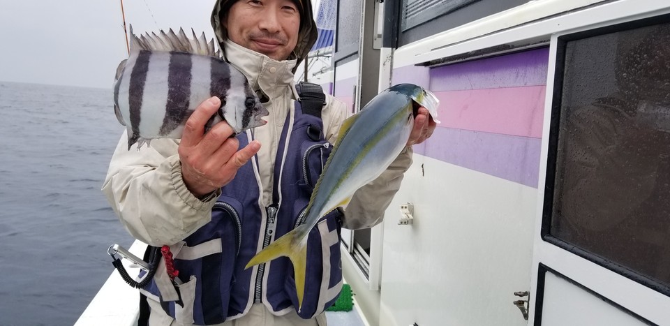今日もご乗船有り難う御座いました。 昨晩の予報は夜中雨からの出船頃は小雨曇り予報でしたので出船確定に、ところが11時過ぎまで雨。今日来てくれたお客様大変申し訳ありませんでした。 水温と気温差で湯気が沸き視界悪く危ないので移動は控えての11時過ぎにイナダ釣りもう少し早く行ければと 時間短いなから何とかお土産にはなりました。 朝アジの喰いも活発でしたハナダイも活発でした。他マダイクロダイウマズラヒラソーダウルメイワシマルソーダ 泳がせ仕掛けは良型イナダ1回、、 毎日出船したいと思いつつ 予約下さいお願いします。