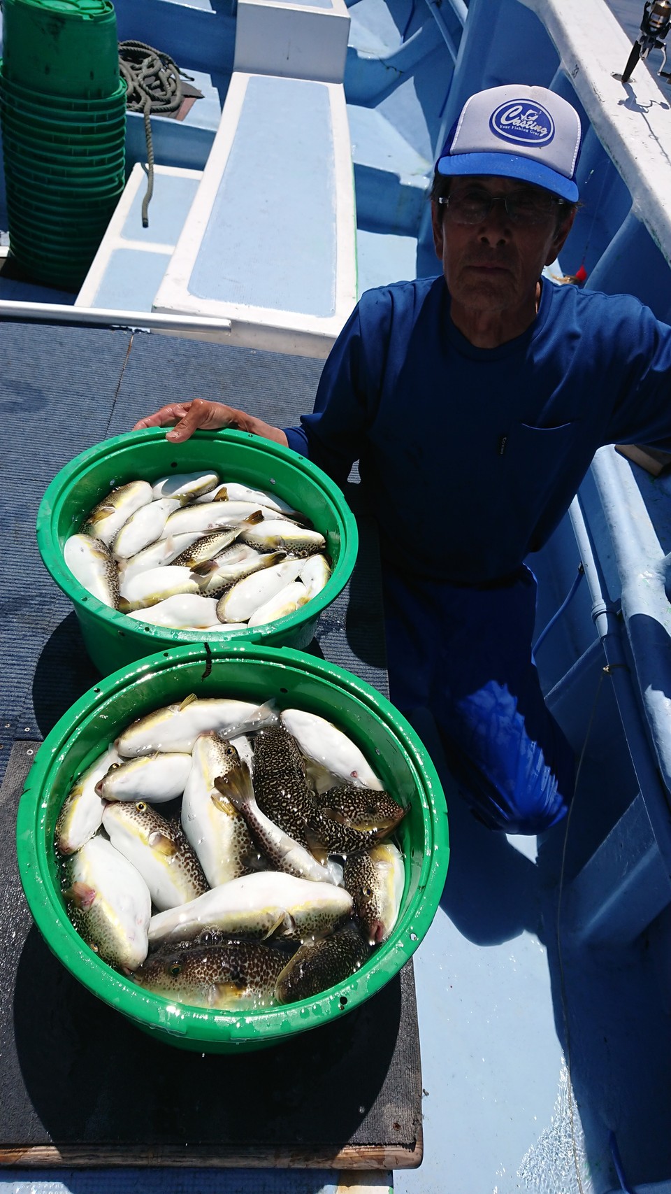 今日は潮流れも程よくも昨日までのウネリでマダコのノリもイマイチで、間が長くポツリポツリとした掛かり出しでした。 いい時にはパタパタと立て続けに掛かった時もあってパターン合う人は数も出ましたね。型は良型多く5kgクラスも複数上がり、4kgクラスから2kgクラスまでも多く上がりましたね♪ ウネリも結構あってバラシも多かったです!上がった以上にバレてる人もいたので今後も期待です!!