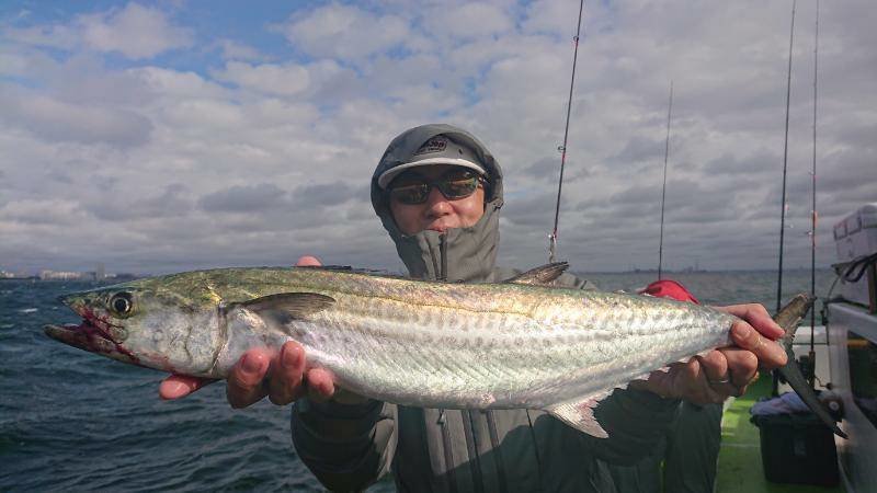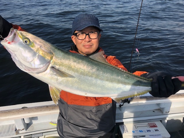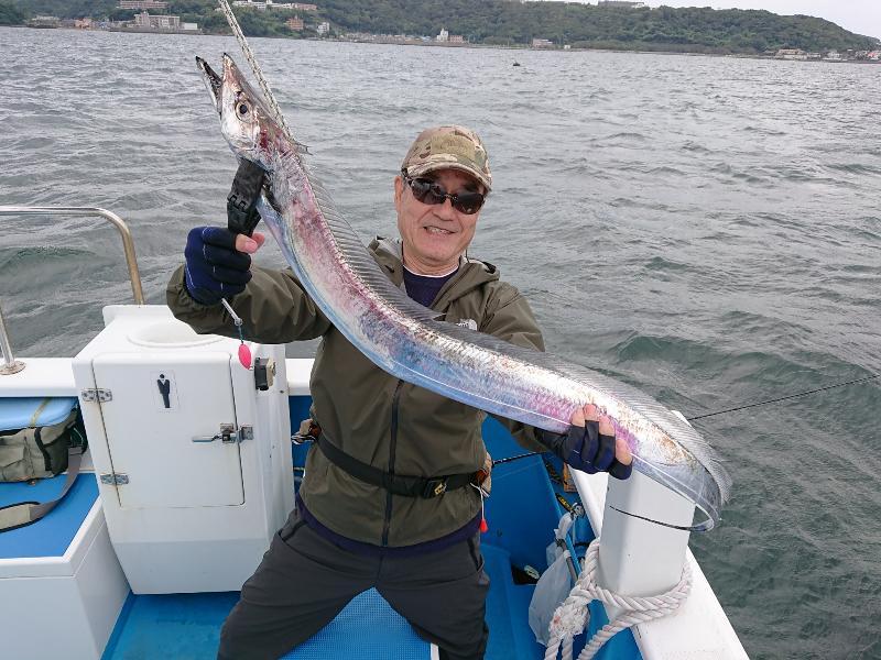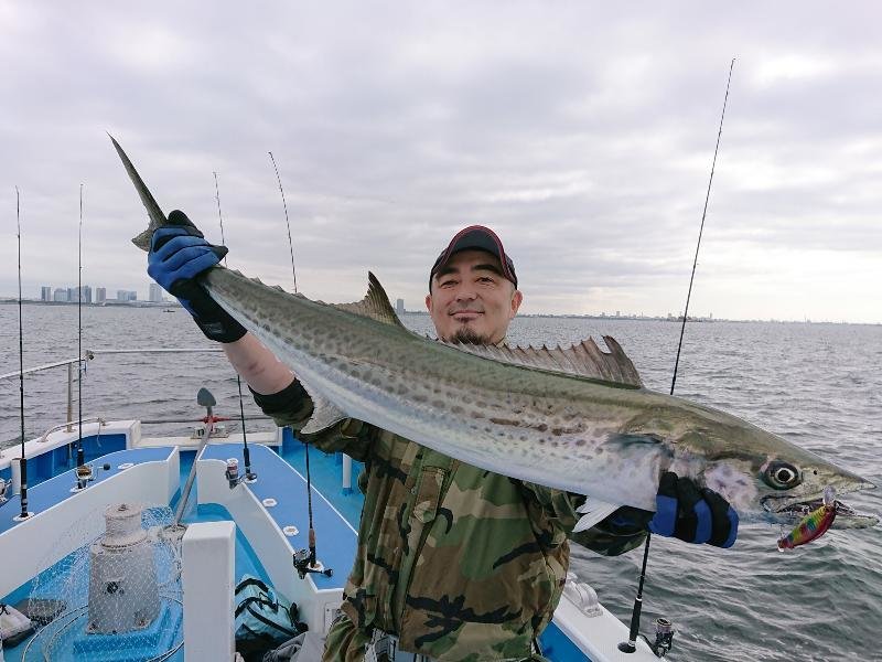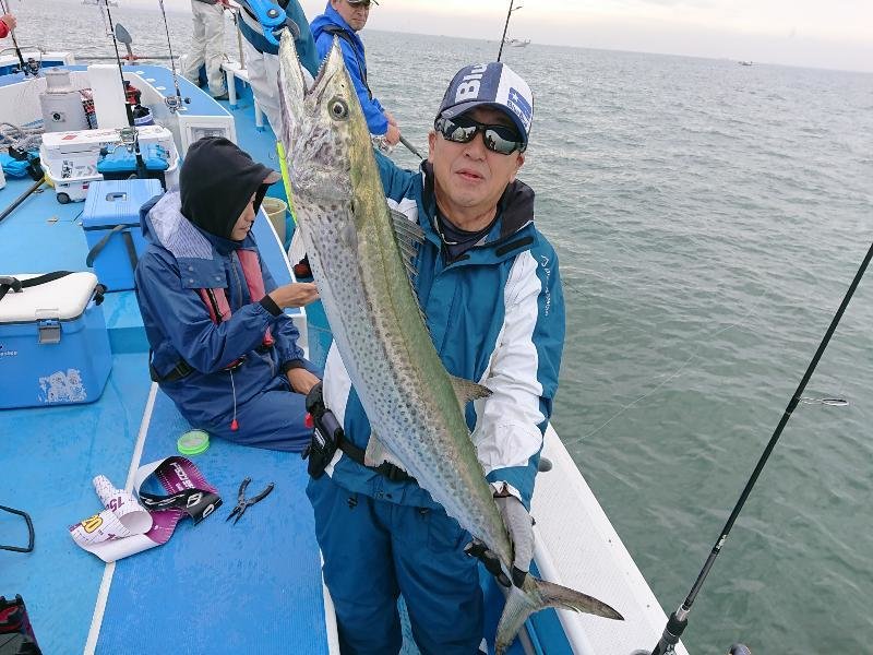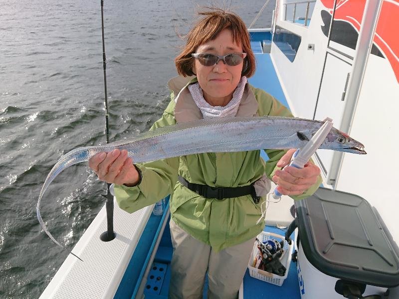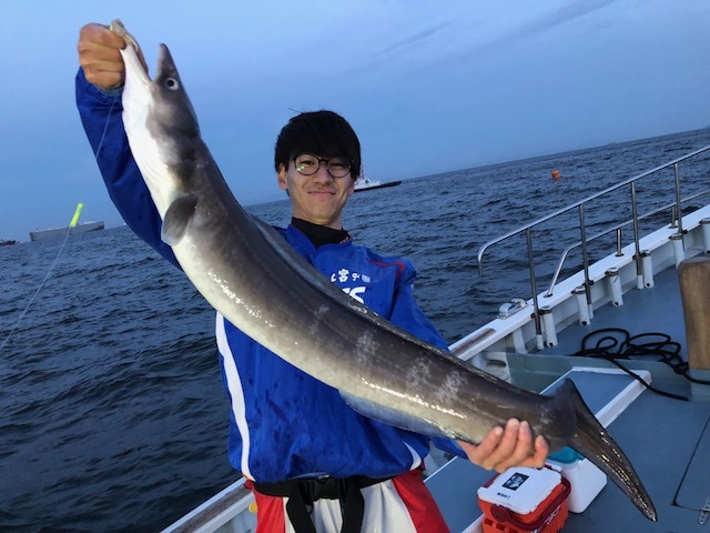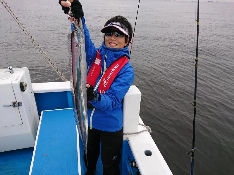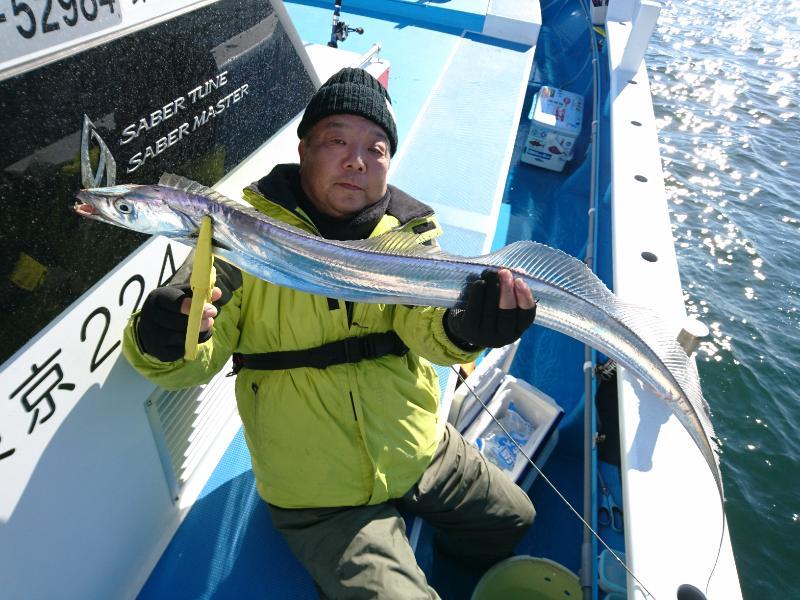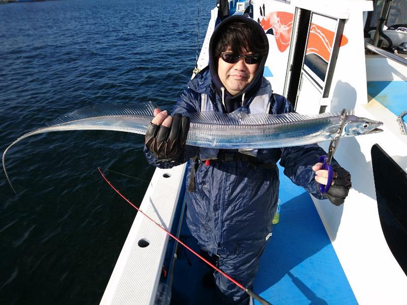 80~110cm 2~11匹 【タチウオ船】今日も湾奥の浅場のポイントから狙いました。細切れながら反応も出ておりましたが、アタリっぷりはイマイチな感じで、型を見るのがやっとの状態・・。その後もなかなか好転する事なく雨も降る中、寒さも増して厳しい釣りに・・。大苦戦の中、後半にちょっと深めの30mほどにまとまった反応に遭遇!テクニカルな感じでしたが、なんとか皆さんにポツポツとアタリが出せ、帰り際まで続いてくれました!
