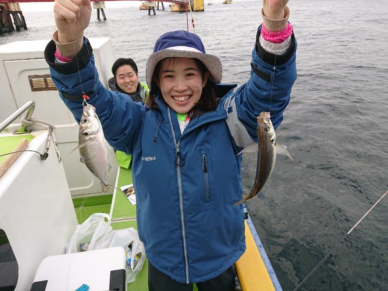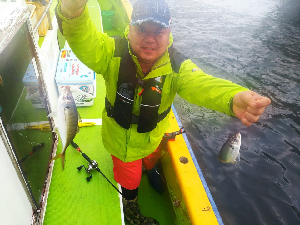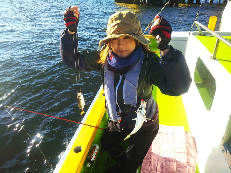 16~27cm 4~85匹 【マアジ船】マアジ船は扇島沖周辺からスタート。反応も点在しており、ジックリと狙っていると20cm前後のアジが活発な感じに!慣れない方もコツをつかんでくるとダブルも連発!ひと通り釣ったところでサイズUPを狙いに沖目のポイントに。こちらは25cm前後の良型そろいも、1時間もしないうちにアタリも遠のき・・。後半は平場のポイントでまたまた好調にアタリが出せました!