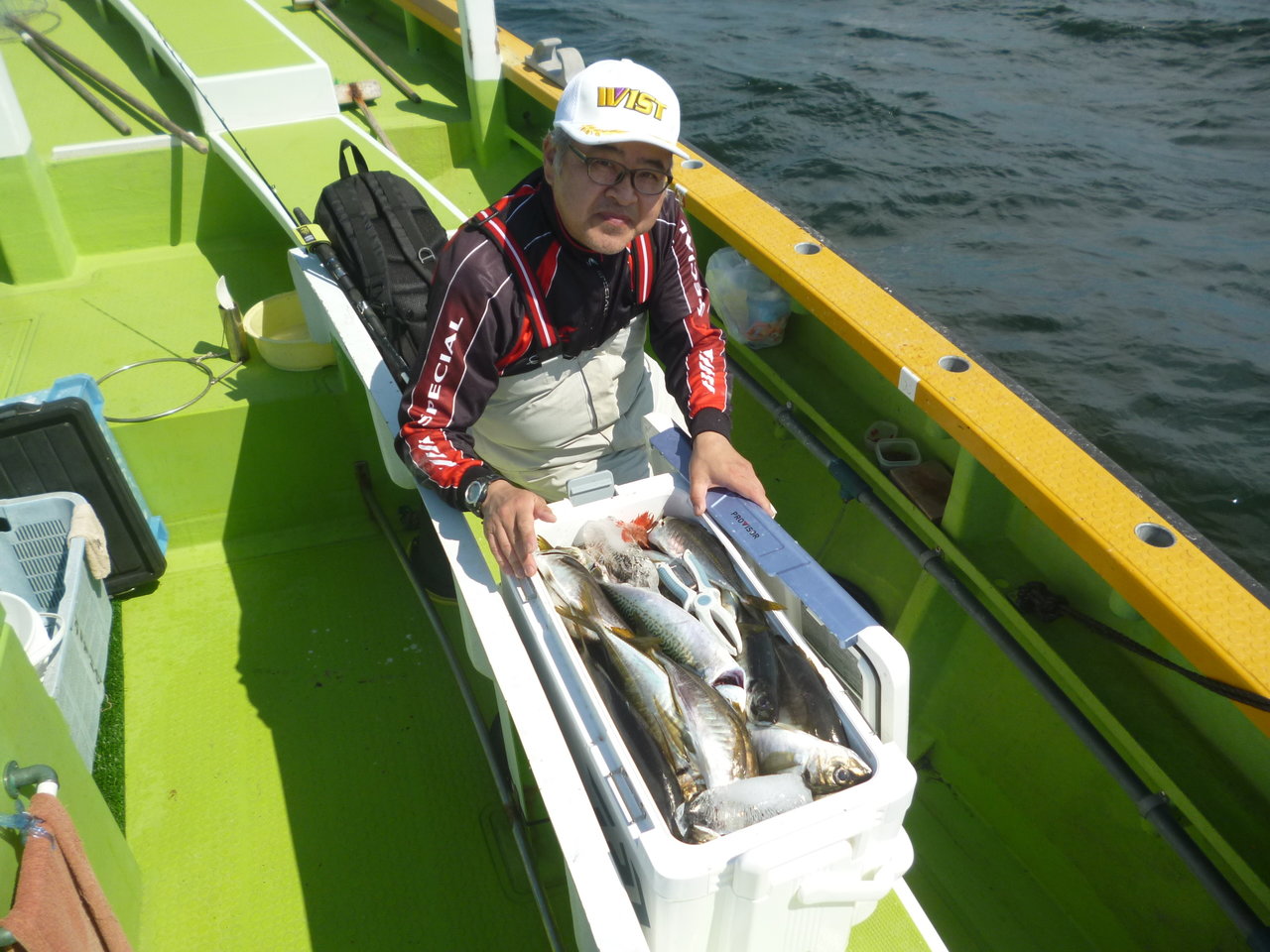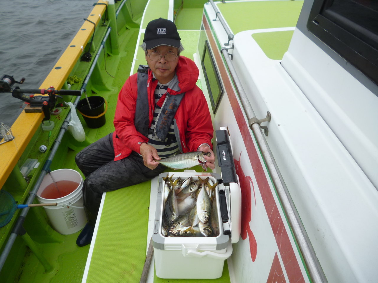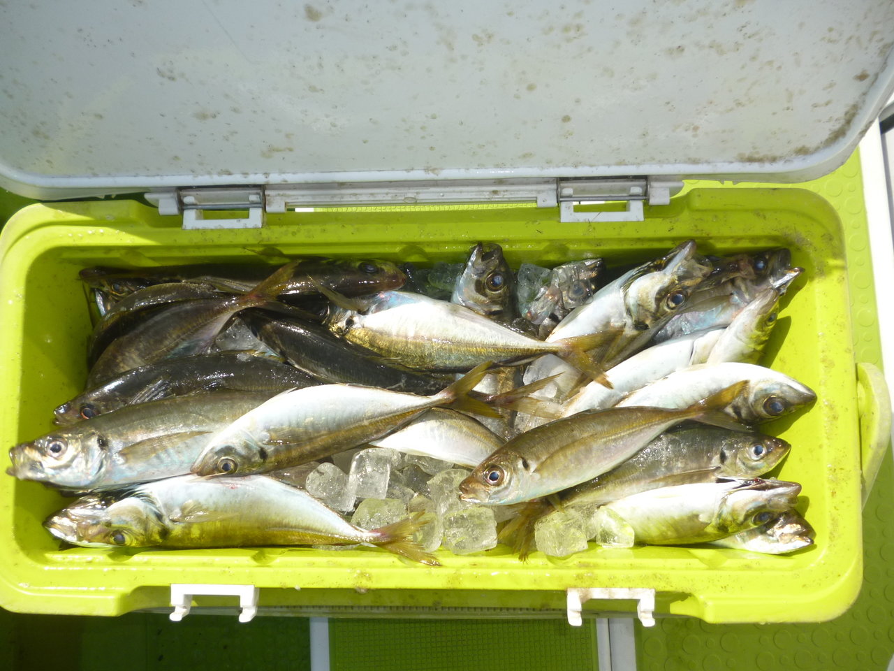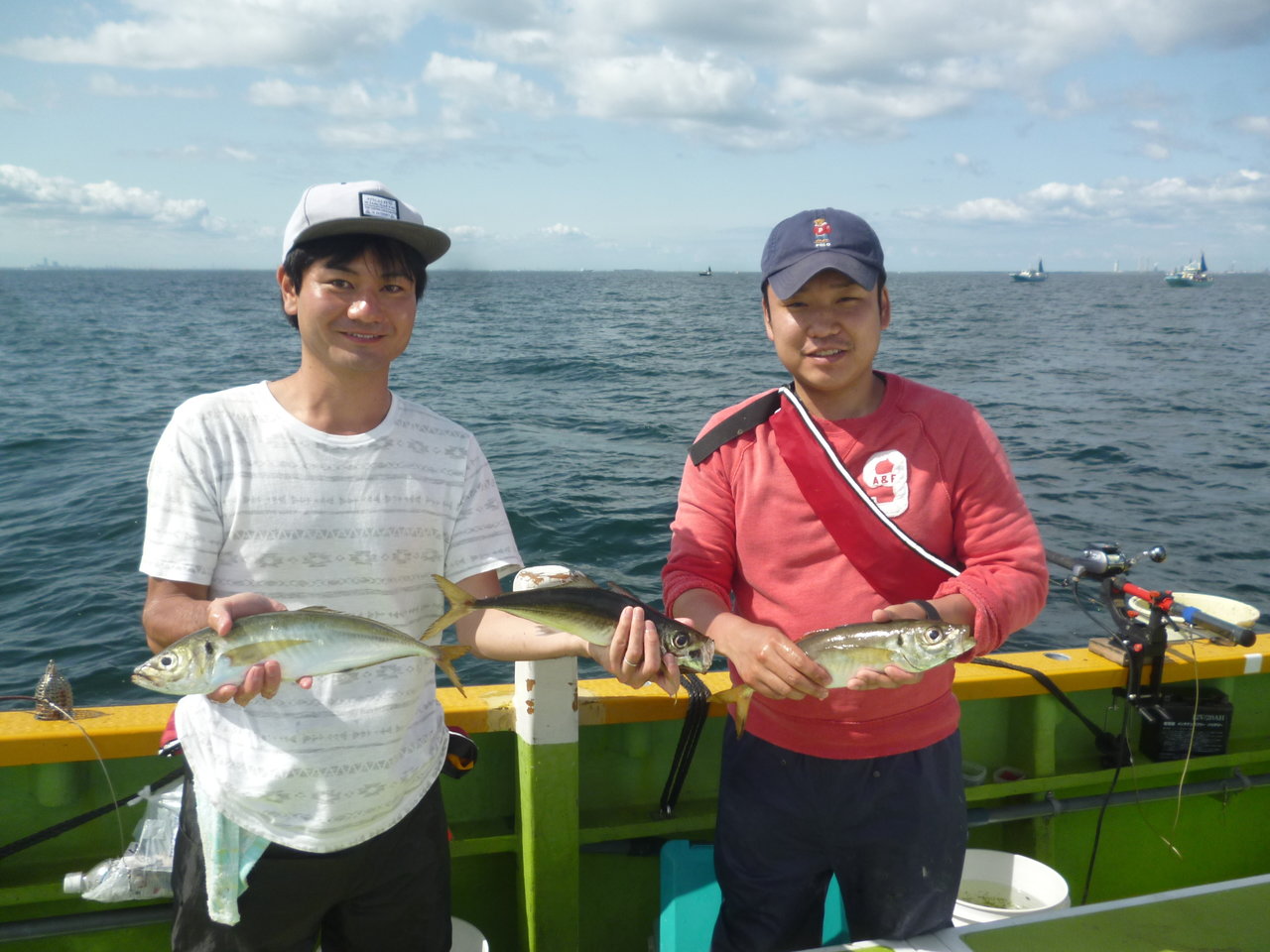 22~34cm 30~86匹 カンコ アジは観音~久里浜沖を狙っていきました。潮は上げ潮から下げ潮で、若干速めに流れる時間もありました。観音沖から始めましたが反応少なく、河豚の邪魔もすごく型程度の食いだったので久里浜沖に移動しました。久里浜沖は潮色澄んでいて深場の釣りとなってしまいましたが、アジの活性は良くダブル、トリプル交え釣れました。型は中アジが主体でした。今日のトップは86匹、桑原さんでダントツの釣果でした。皆さん本日もお疲れ様でした