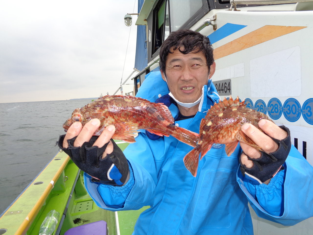 16~29cm 1~29匹 今日は乗合3隻でゆったり出船しました。 予報通り朝から冷たい雨と北風で、午前中は海上も露天風呂の様に湯気の出る極寒でした。 全船で鴨居沖の30m前後の深場ポイントを流しながら船中ポツポツ釣れて前半の上潮、後半の下潮共に程良く潮が流れてる時間帯にダブルや連チャン場面が多く見れました。 雨も昼前に上がりましたが、極寒は定刻まで… それでもアタリの多い一日でしたので、タフな寒さにも皆さんリタイアせずに、ガンガン竿を動かして女性の方達も大健闘して貰えました。 半日悪天候の中でしたが、皆さん良く釣れてトップはボスキャラ堀江さんが29枚の好釣果、次いで山本さんもブルブル震えながらの誘いが決まって25枚の好釣果、別船も22枚と続き、女性を含む多くの方がツ抜け以上の大健闘でした。