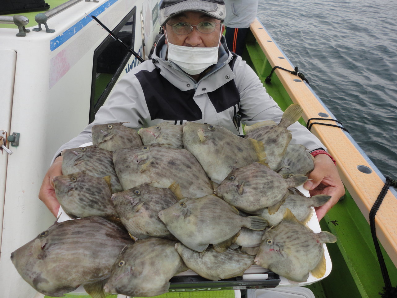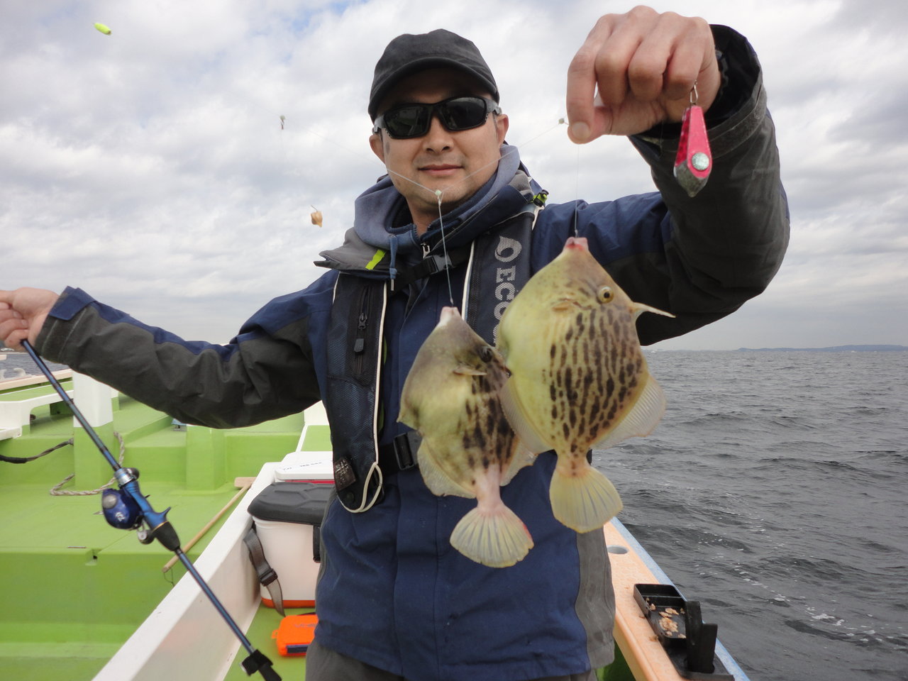 16~28cm 1~14匹 乗合と仕立船に全船で竹岡沖からスタートしました。 極寒な天気と共に水温も16℃に下がった為か、カワハギの活性が上がらず苦戦を強いられました。 先日アタリが多かった20m前後のポイントから、航路ポイントの30m前後まで転々とアタリの多く出る好ポイントを探索して行きましたが、船中までアタリが出る場面が少なく、粘れるポイントが少なかったです。 後半は鴨居沖に移動しました、こちらでは船中ポツポツ釣る事が出来て、名手は連チャン場面も見れました。 ただ盛り返しには勢いがイマイチで、時間切れでした。 急な水温低下で活性が下がったカワハギに上手く立ち回れず苦戦してしまいました。 それでも皆さん極寒の中、定刻まで大健闘して貰えて、女性の方もダブルを決めてツ抜け達成出来てました。 トップは名手.青木さんが14枚、次いで沼山さん11枚と続きました。