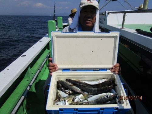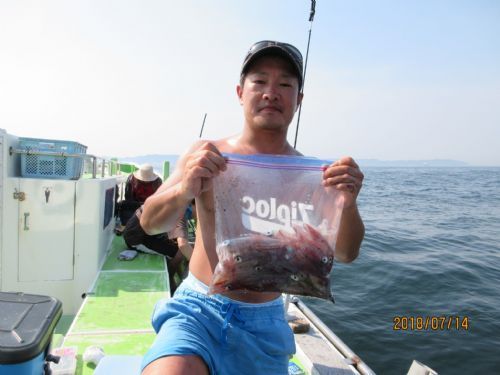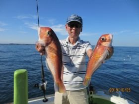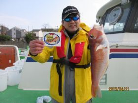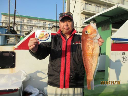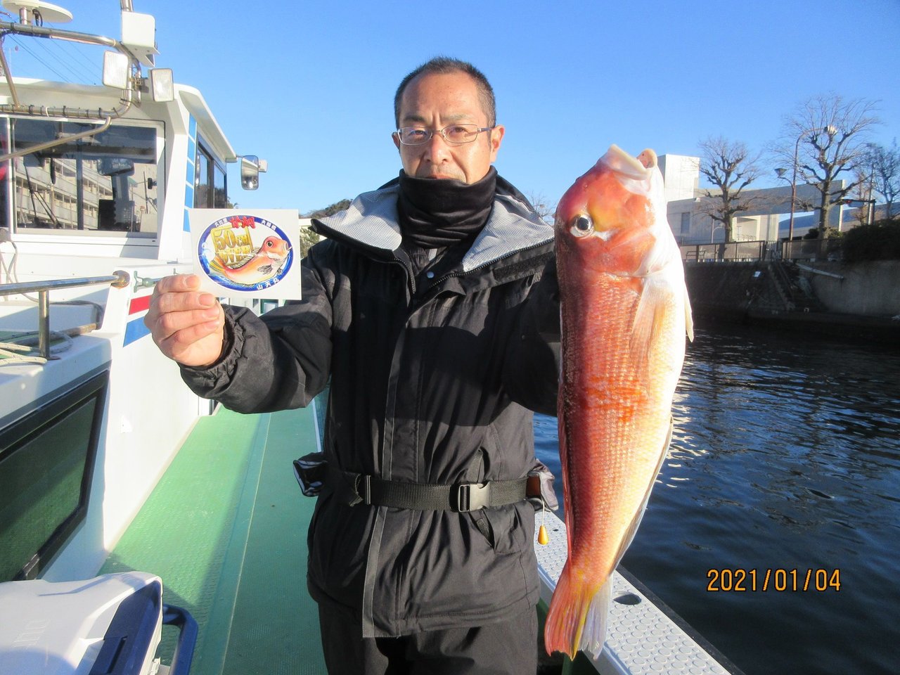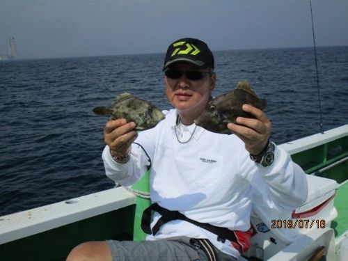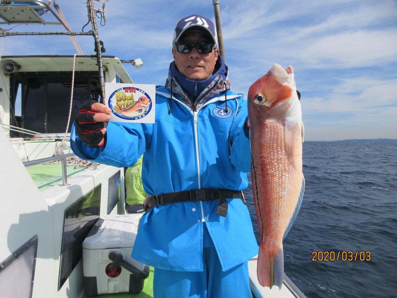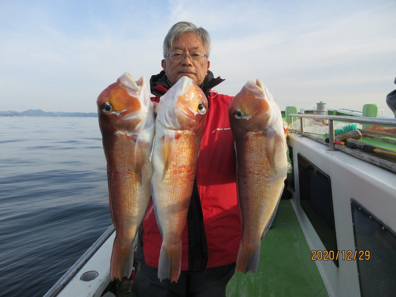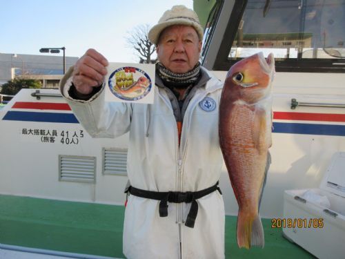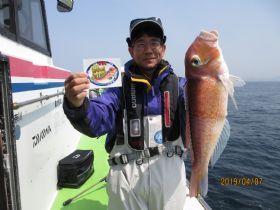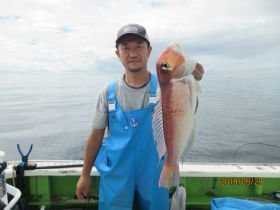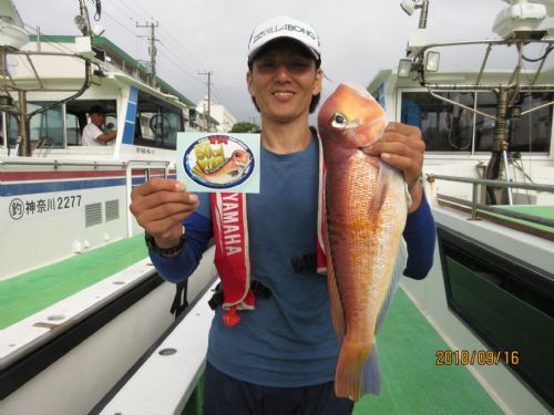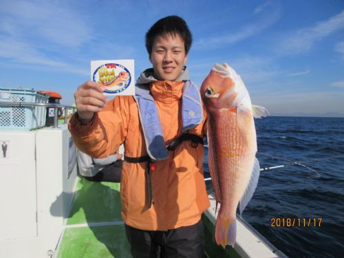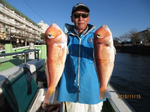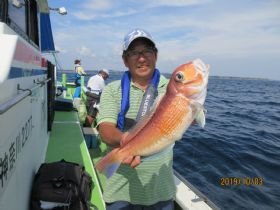 アマダイ船。保田沖から金谷沖を転々と狙い、風弱く海上穏やかで良い天気でした。 1日を通してあまり潮が流れず外道のアタリ少なく、各ポイントで本命は船中ポツリと顔見れるものの単発で、サイズは中型主体に良型&大型44cm混じりで終日ポツリポツリの拾い釣りでした。 トップは中・良型揃いに大型44cm含み5尾、2番手4尾、オデコ無く全員ゲット出来ました!