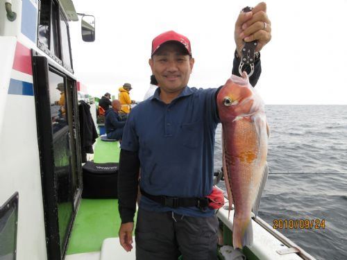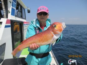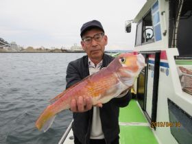 21~47cm 2~8匹 オニカサゴ ホウボウ イトヨリ カイワリ アマダイ船。下浦沖から保田沖を転々と狙い、日並良く風弱かったもののウネリが1日有りました。 1日を通してあまり潮が流れず外道のアタリ少なかったが、良い流しには手の合った方はアマダイ連発し船中ポチポチと拾え、サイズは中型主体に良型多く大型46.5cm・46cm混じりで終日ポツリポツリと顔見れました! トップは良型主体に大型46cm含み8尾、2番手7尾、3番手は大型46.5cm含み6尾、裾2尾でオデコ無く全員ゲット出来ました!シロアマダイは小さいのいましたが良型40㎝・39.5cmも出て船中5尾♪