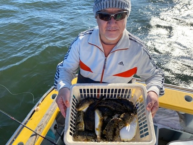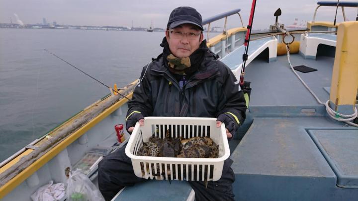 22~36cm 0~5匹 マダコ コモンフグ ヒガンフグ船、今日は満席で出船出来ました。ありがとうございました。 1日を通して地味〜な釣れ方でしたが釣れるヒガンフグは小型なく中型〜良型メインに大型混じりでした。東京湾ブランドのマダコ、良型コモンフグも混じり嬉しいお土産になったお客様も。 貸し竿のお客様も早い段階で釣っていただきましたが全員ゲット出来ずスミマセンでした。 明日も気合い入れて出船しますのでこれからのご予約お待ちしてます! 釣果はヒガンフグのみです。