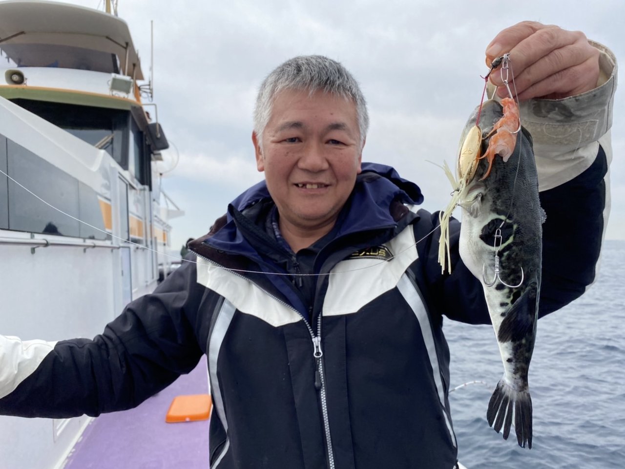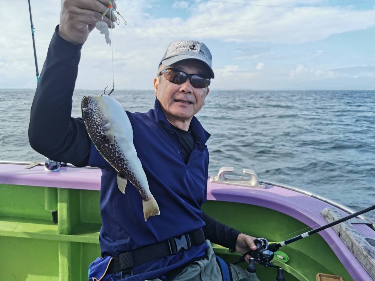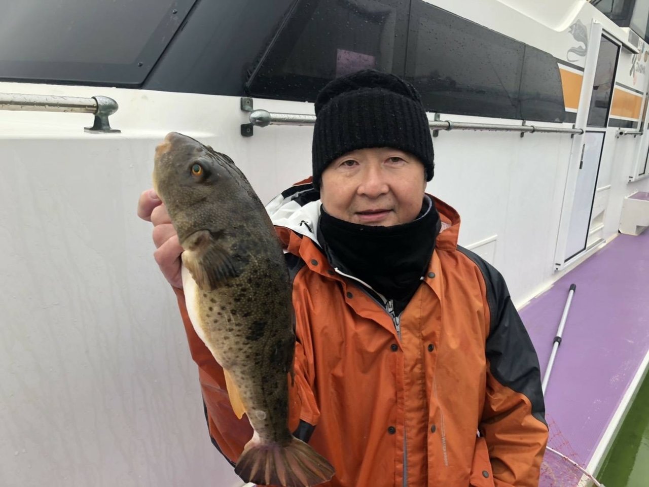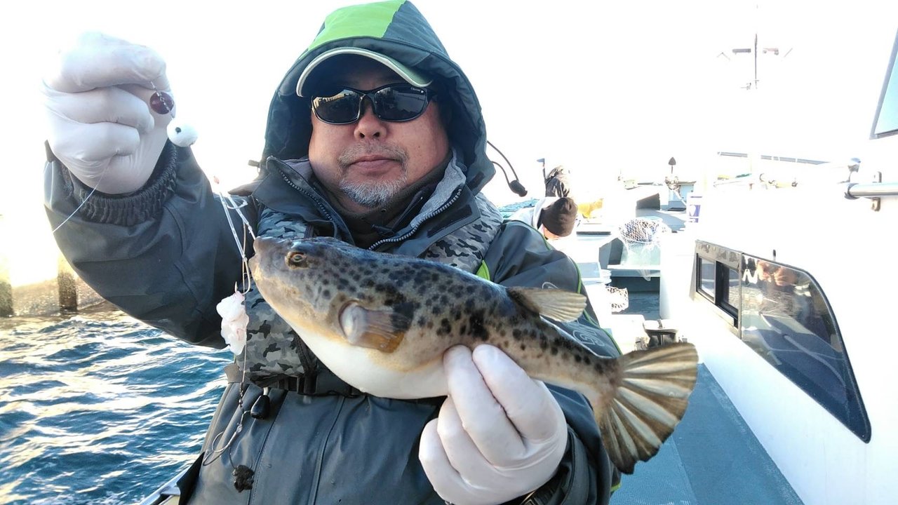22~36cm 0~8匹 マダコ ショウサイフグ コモンフグ ヒガンフグ船、今日も出船出来ました。ありがとうございました。 朝から冷たい雨風の中皆様に頑張っていただき良型メインに大型多数。今日もマダコ、ショウサイフグ、コモンフグと嬉しいお土産ゲットした方はニコニコ。 最後まで集中力切らさず頑張ってくださいましたが全員ゲット出来ずスミマセンでした。 また次回も気合い入れて出船しますのでご予約お待ちしてます! 本日トップは串間様(女性)、出川様、兼杉様でした。