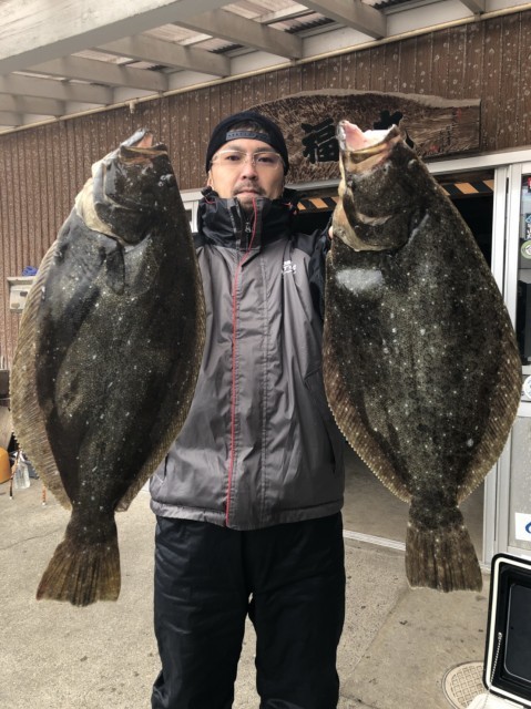 0.50~2.00kg 1~4匹 午前船。 ヒラメ船は水深4〜15m。 朝一から順調に型があり間が空く時間もあったがポイント移動後も流す度に型があり良型も混じり全員ゲットできました。すみ気味。
