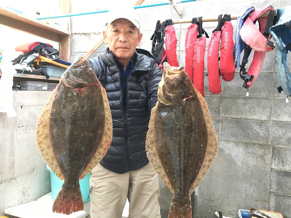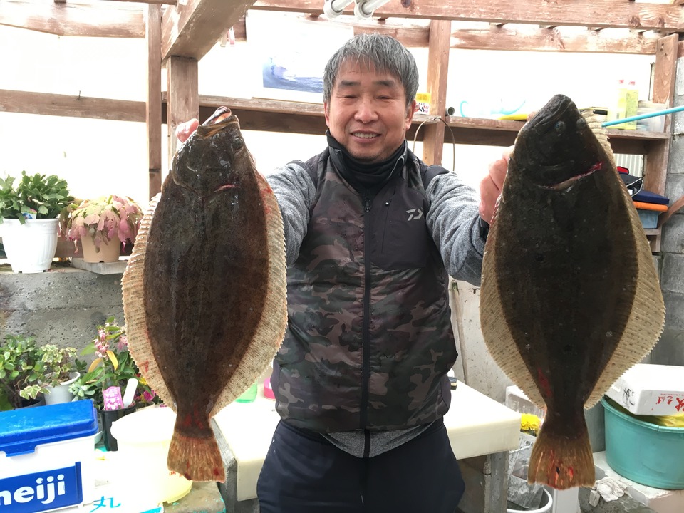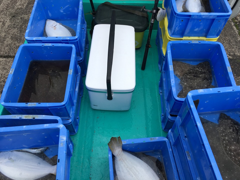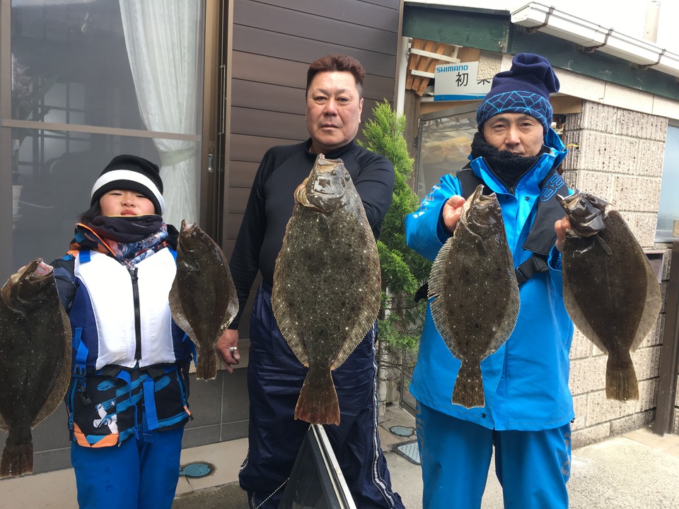 1.00~3.22kg 2~3匹 今日はヒラメに出船出来ました。 イワシがいましたが朝イチは食わない。 と思ったらすぐに4連発。 6時には全員釣れました