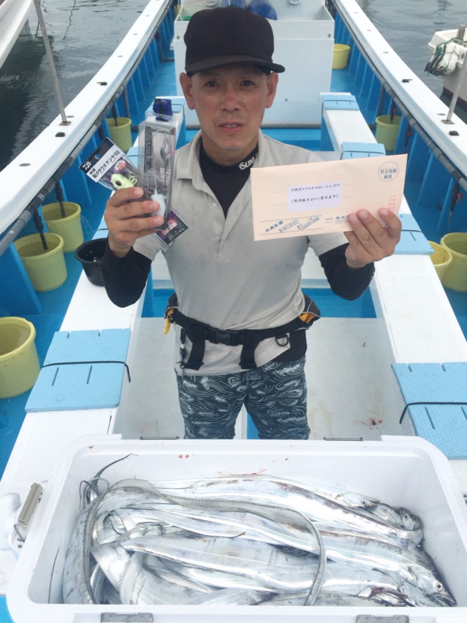2019年9月26日に出船した際、タチウオ10~37匹(70~134cm)、アジ合計1匹(41cm)、サバ0~2匹(40~46cm)、サワラ合計1匹(81cm)、イシモチ0~4匹(25~35cm)が釣れました!