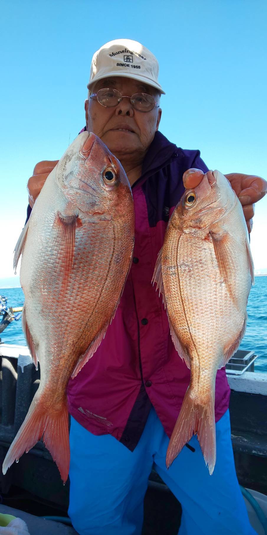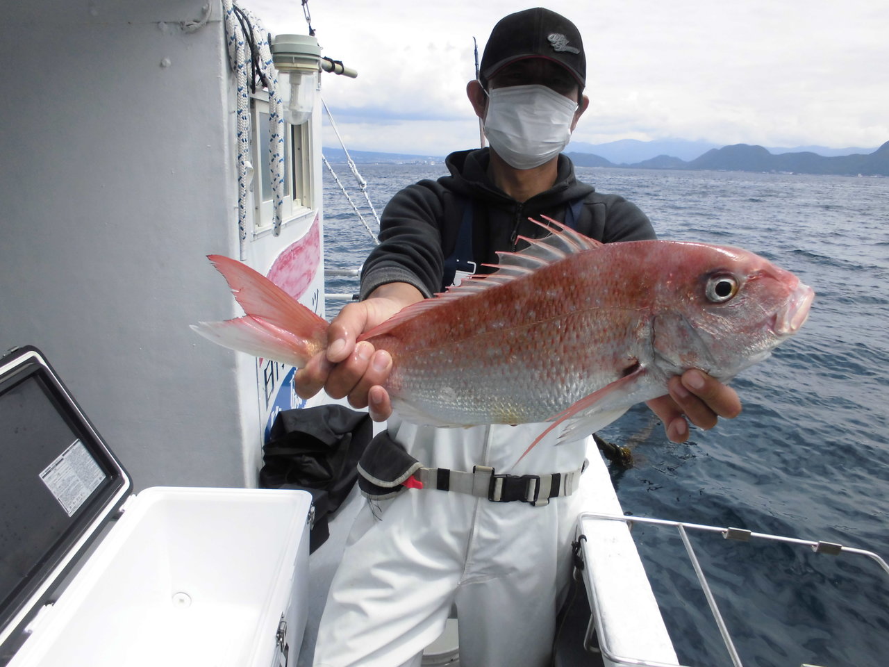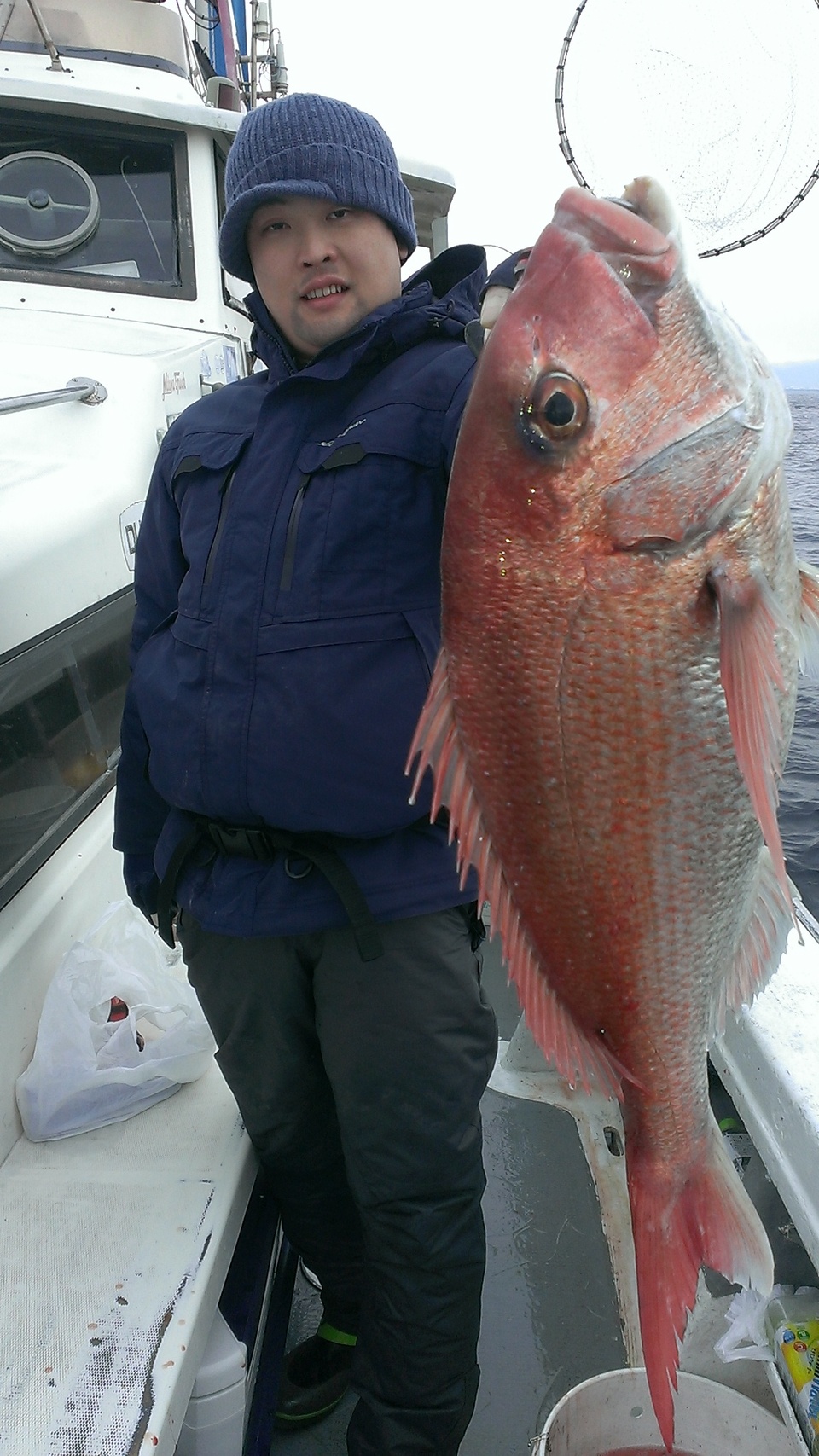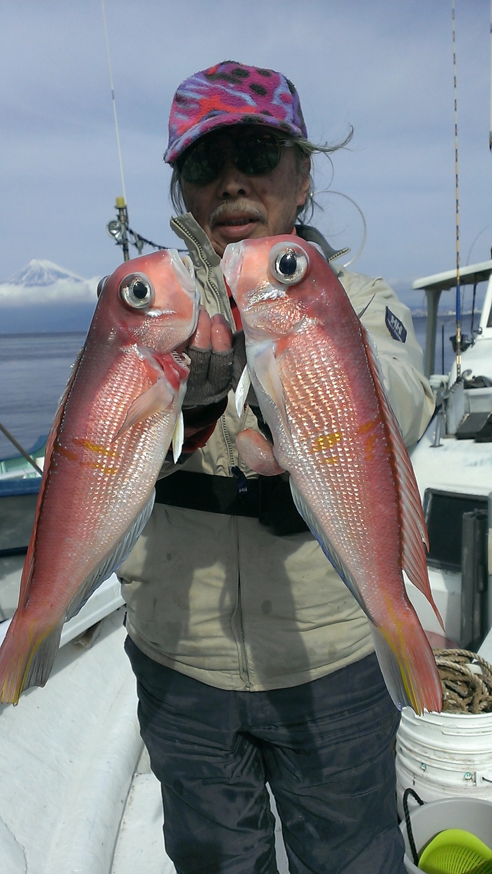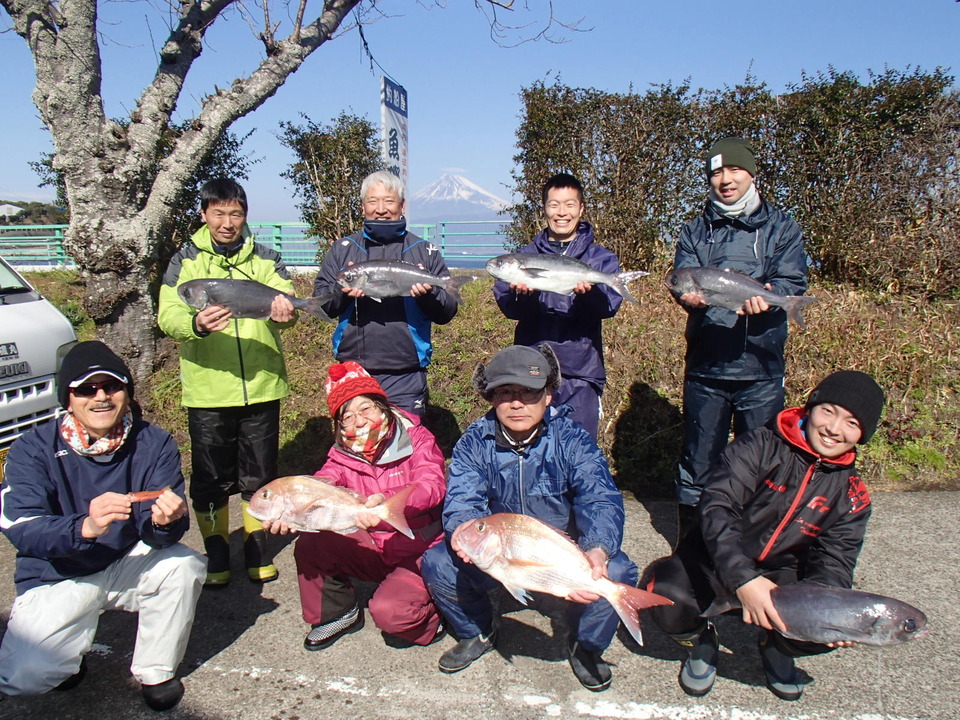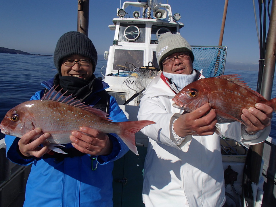 午後マダイ五目船です。 バラシあり。 喰い渋い状況でしたが、良型ヒット! 今日はお天気でナギ、雪をすっぽり被った富士山も顔出しました。(午前中は裾までキレイに見れたのですが)
