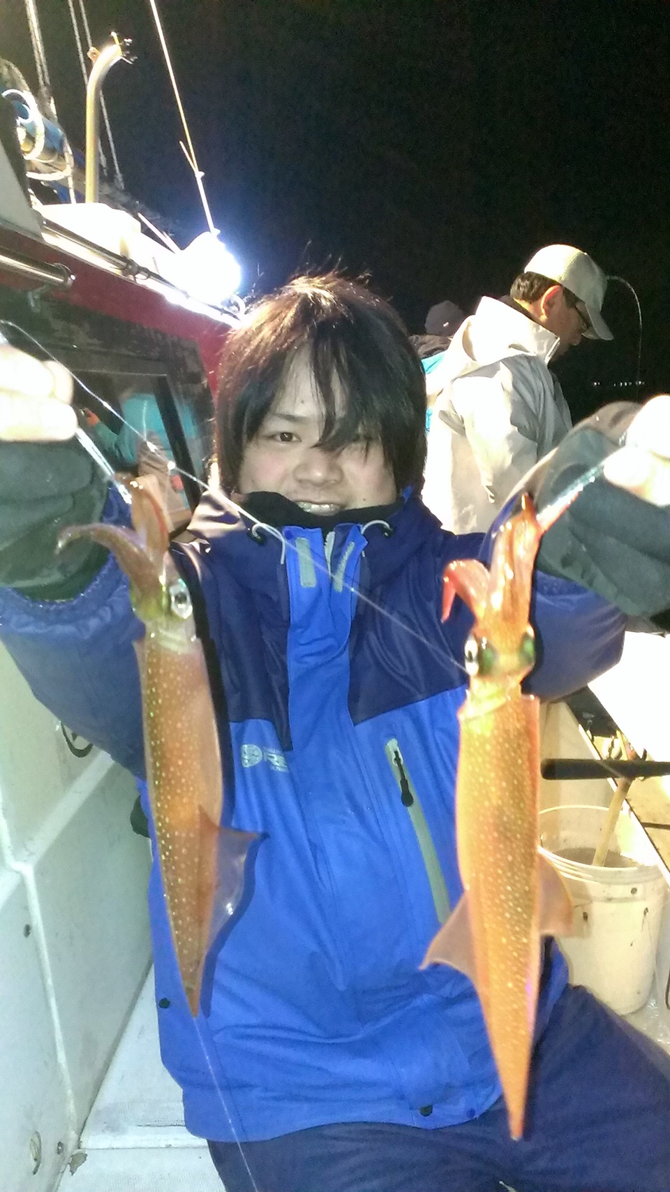 マルイカ 夜釣りヤリイカ船です。 全般に乗り悪くスルメとマルイカが少々。 雨降りの中、お疲れ様でした。