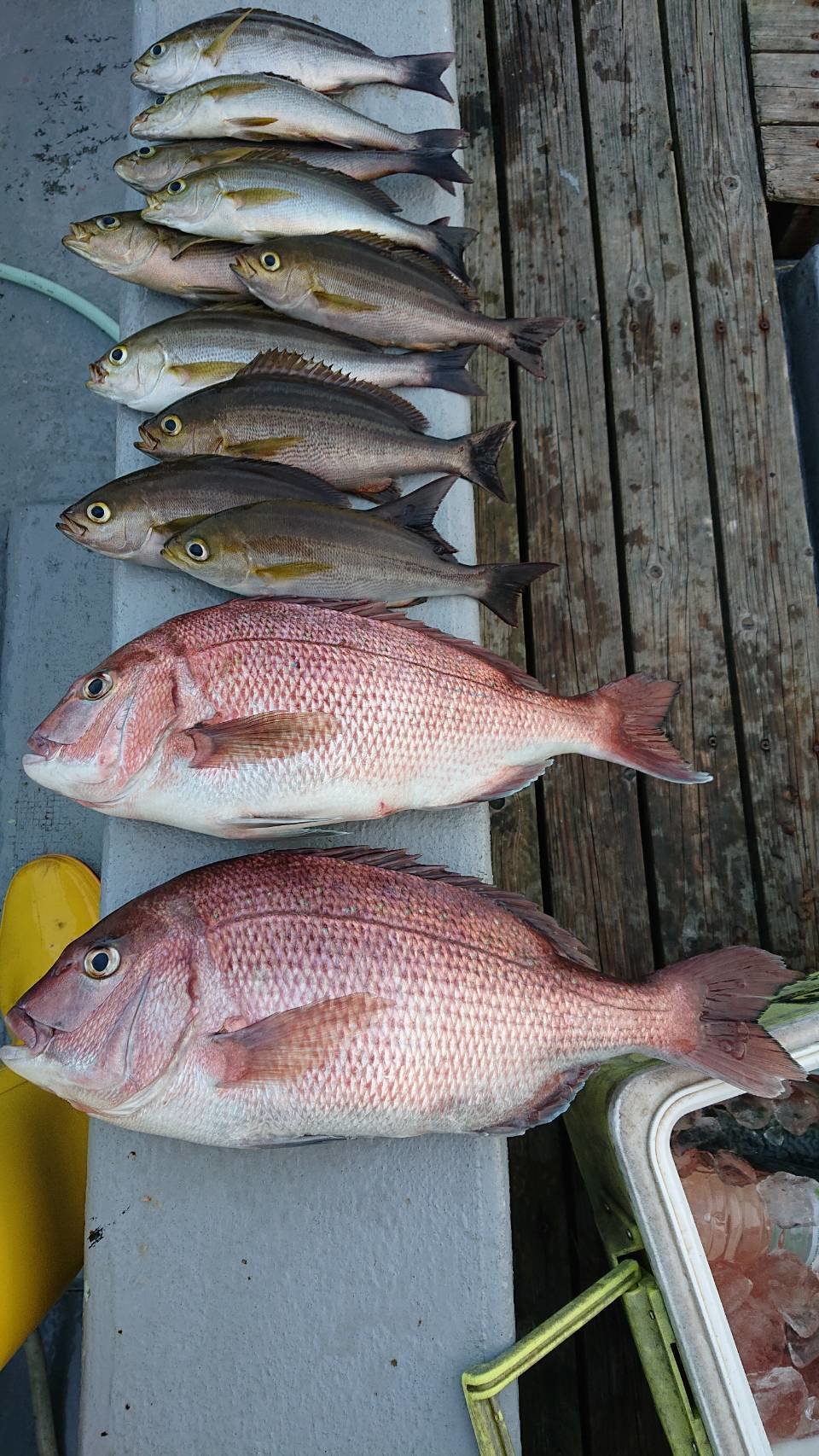0.70~0.90kg 0~2匹 イナダ アジ サバ 午後マダイ五目船です。 潮の動き悪くマダイの喰い渋かったです。 イナダ・中~小アジ・大サバでお土産ありました。