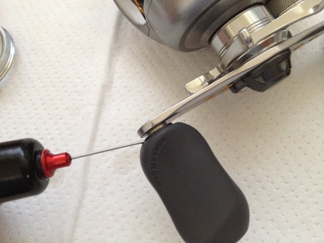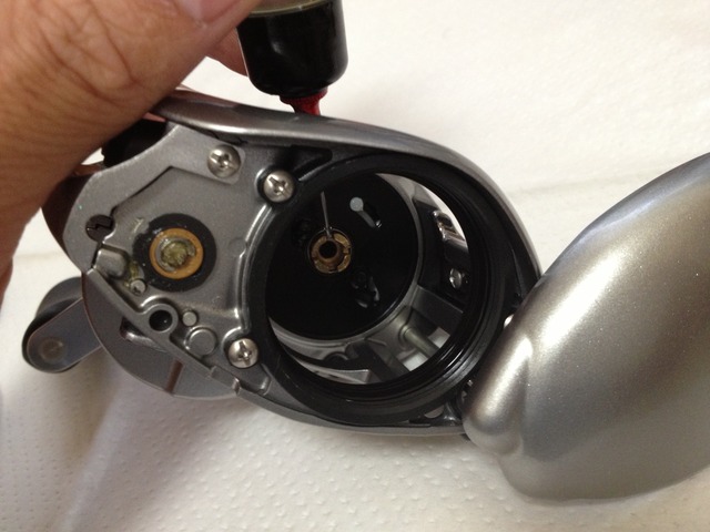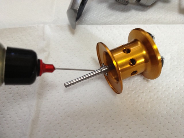 写真のレベルワインド軸部分にはグリスを薄く塗布