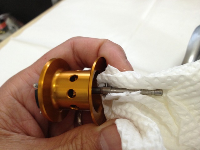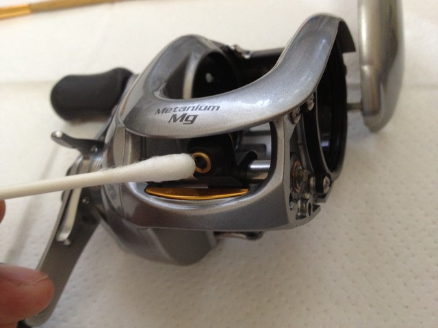 レベルワインドのガイド部分は綿棒や紙縒りでクリーニング