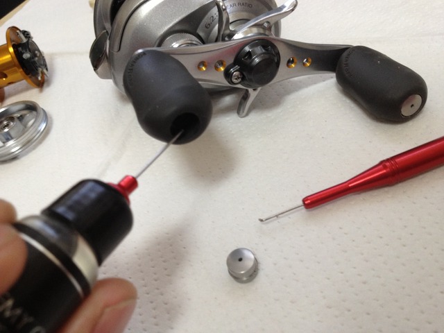 ハンドルノブキャップを取り外せば、写真部分にも注油可能