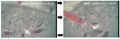 今までのモニターテストの結果でよく見られたのがエサ取りの集まった後に大物が良く現れました。