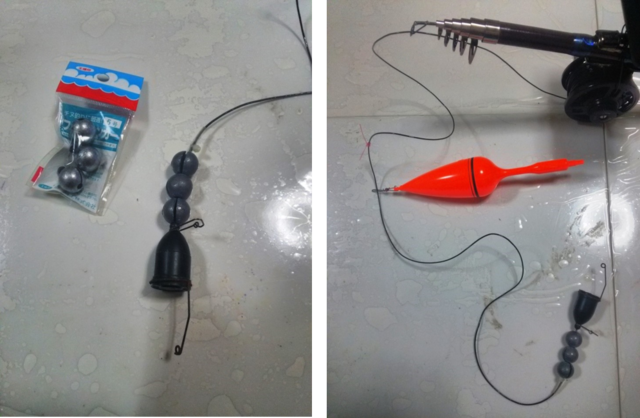 次に遊動ウキをつけたいと思います。ウキ止めですが樹脂ゴム製の物をラインに括り付け、特殊なサルカンでウキペットの変わりにしたいと思います。