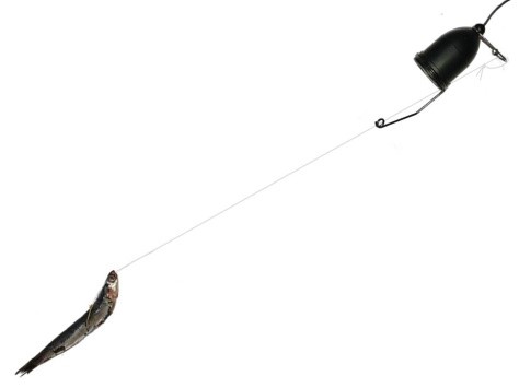 写真ではイワシですが動画では活き魚を付けております。