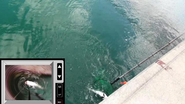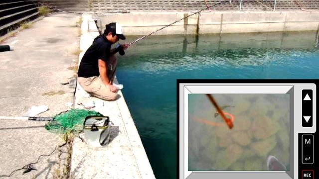 仕掛けですが、カメラの下に釣り堀専用仕掛けをつけます。
