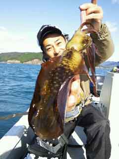 そこで、具体的なシャクリとしてはワンピッチジャークで3~8回シャクリアタリを待ちます、アタリの待ち方といたしましてロッドを自分の待ちやすい位置に構えボートが流れるに従いエギを水平にスライドさせてやります。そうすると、アオリイカはエギの後ろから追いかけてきてエギを抱きます。アタリがあったらすかさずアワセを入れてフッキングするわけですが、このフッキングが結構大事で大きく合わすのではなくビシッ!とシャープに合わすと後ろから追いかけてきたアオリの手に掛かることが多いのです。