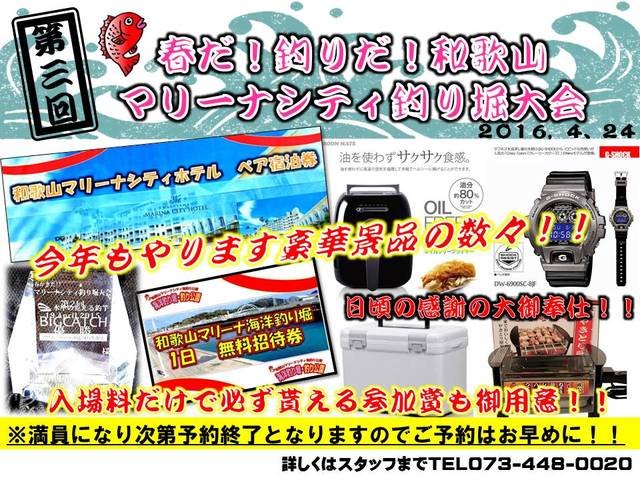 第三回 春だ!釣りだ!和歌山マリーナシティ釣り堀大会は(入場料のみ)で特別大量放流+豪華景品プレゼントと言ったスペシャル企画となっております!