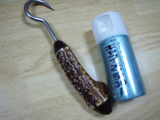ギャフなどもそうです。直接魚を触らないで持ち上げたり移動したりするときにギャフを使います。これは魚の鮮度を保つためでもありますし、魚が暴れたりしても落としにくいのが大きなメリットです。