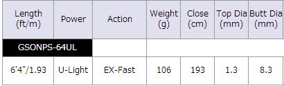 ベイトモデル64ULと同一ブランクスのスピニングバージョン。軽いタイラバで素早くボトムに落とし、効率よく鯛を誘う事が可能。ドラグ性能に優れたスピニングタックルでシビアコンディション下で鯛を誘うのに適したモデル。