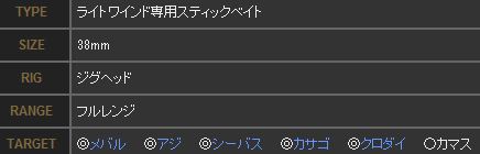 このマナティー38は従来のマナティー同様にワインドアクションでアジやメバル、カサゴ(ガシラ)にも捕食スイッチをいれることにより深いバイトを狙っています。