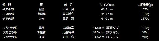 フカセの部では、初めて尾長グレ44.8cmも登場し大変盛上りました。