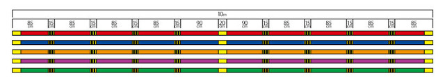 10m×5色(1m毎の黄黒黄黒黄マーク、5m毎のイエローマーク付)