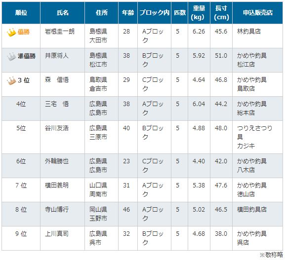 当日、天候は良かったのですが、少々風が冷たい中での開催でした。入賞するためには、5枚そろえることが最低条件となるハイレベルな戦いを制したのは、 既定数を超える8枚を釣り、サイズを揃えた岩根圭一朗選手が見事優勝でした。