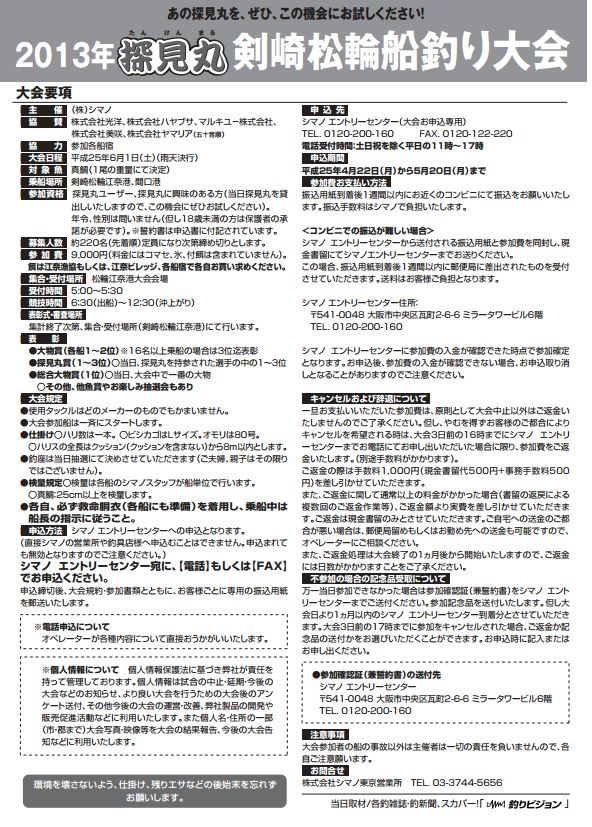 探見丸船釣り大会・剣崎松輪船釣り大会 募集要項を公開しました。