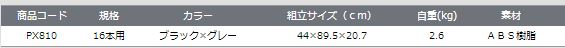 合計16本のロッドがディスプレイできるABS樹脂製のロッドスタンド。