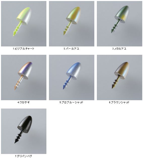 【カラー】 1.ビジブルチャート /2.パールアユ /3.メタルアユ /4.ワカサギ /5.プロブルーシャッド /6.ブラウンシャッド /7.グリパンバグ