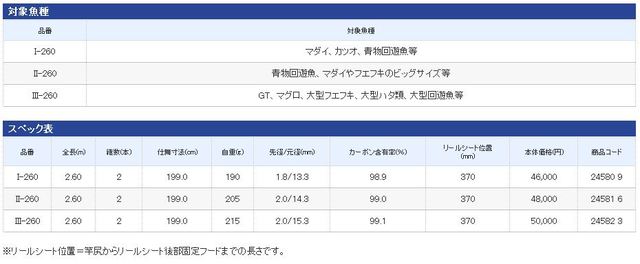 イソマグロ、マグロ、大型カツオ、シイラ等のフィッシュイーターを対象にしたスピニング泳がせのパワーロッド。パワーとスピードのある対象魚にも安心して対峙できるアクションを備えるモデル。パワーと信頼性を高次元でバランスしたロッドブランク。