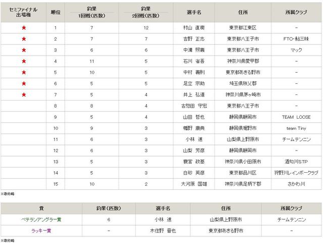 結果的には、2回戦で2位の選手に5匹の差をつけた村山 直樹 選手が見事優勝。