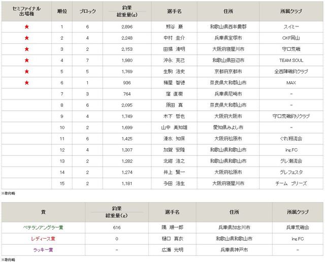 結果的には2800g台の圧倒的釣果を記録された熊谷巌選手が見事優勝。