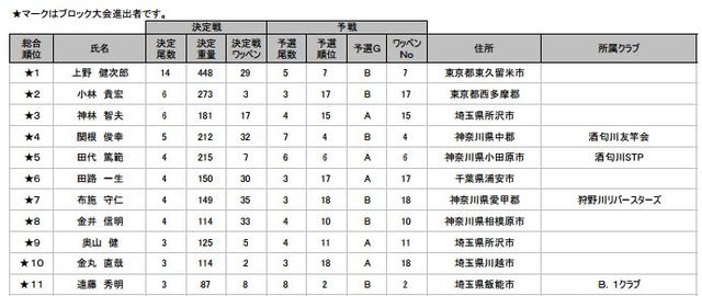 ダイワ鮎マスターズ2013 南関東B地区大会結果