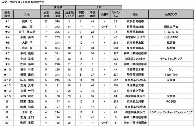 ダイワ鮎マスターズ2013 南関東A地区大会結果