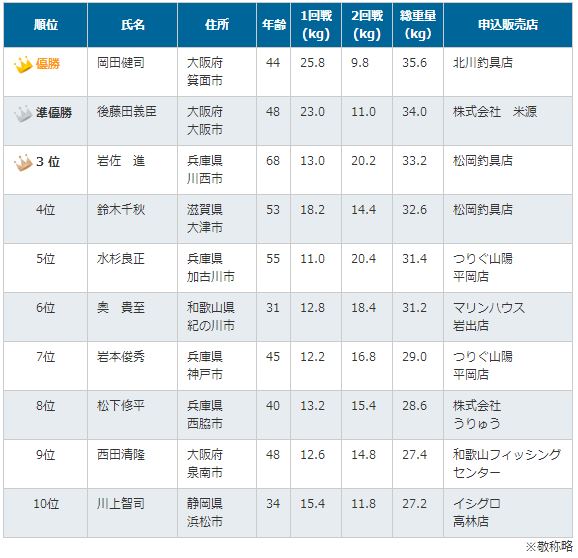 審査方法 1回戦・2回戦で釣り上げたヘラブナの総重量にて審査。
