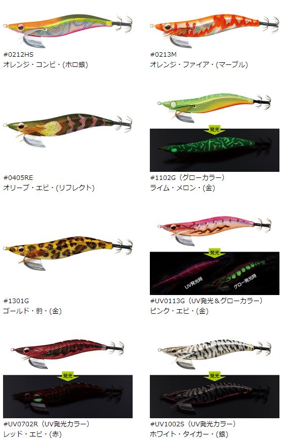 エギ番長2.5号ノーマルシンキングに新色#0212HS / #0213M/ #0405RE / #1102G / #1301G / #UV0113G / #UV0702R / #UV1002Sの8色を追加ラインナップ