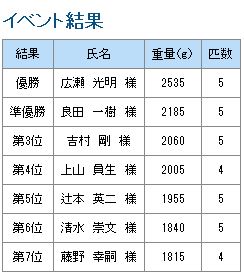 35~40cmが5匹の中に数枚は混ざる予定だったのですが…。事故も無く無事開催出来ありがとうございました。