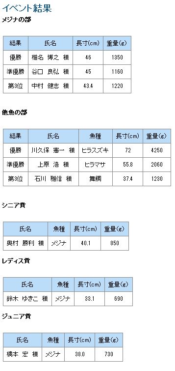 また、黒鯛は難しかったようで30cm以上の表彰対象魚は持ち込まれませんでした。