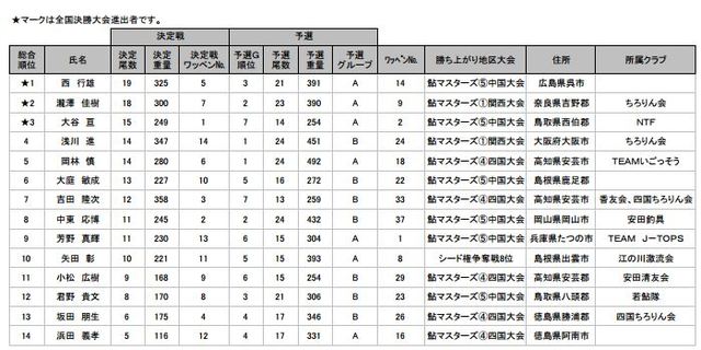 ダイワ鮎マスターズ2013 西日本ブロック地区大会結果