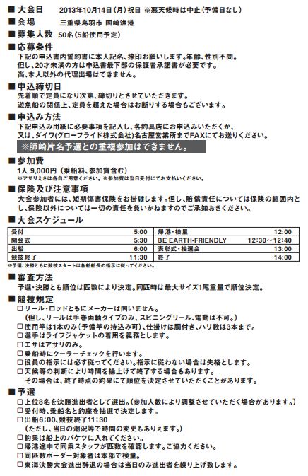 2013 ダイワ カワハギオープン東海チャンピオンシップ 師崎片名予選