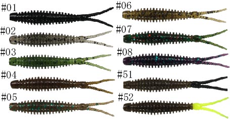 V字形ピンテールがシルエットの変化を生み出します。ベイトフィッシュをイメージするのであればジグヘッドリグで縦方向にセット。ボディロールを伴うスイミングアクションを演出。エビ喰いイメージで使いたい場合やスモラバトレーラーとして活用したい場合は水平方向にセット。リアクション要素を盛り込んだ動きの演出や、ふんわりと漂わせるイメージでの演出も効果的。