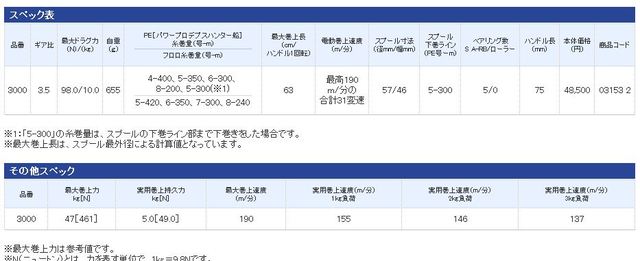 [ZigBee]や[ファインドットLCD]も惜しみなく搭載し、最大巻上力47kg、巻上持久力は5.0kg。もちろん3000クラスでの圧倒的なパフォーマンスを誇る。