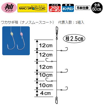 鈎先に定評のある「ワカサギ袖」にナノスムースコートを施し、驚異的な掛りの新しい仕掛を作りました。