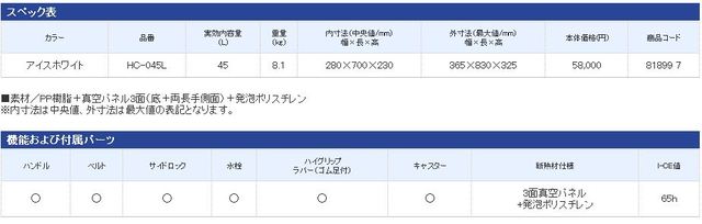 真空パネル3面+スチロールパネルで保冷力もクラス最大級!(※45Lクラス当社比)